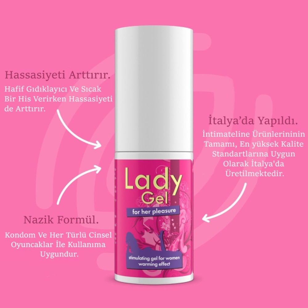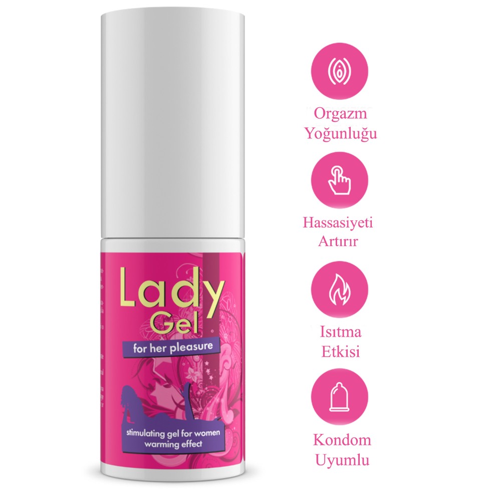 Lady Gel, klitoris ve vajina için uyarıcı bir jeldir ve özellikle kadınlarda cinsel hazzı ve genital bölgelerin hassasiyetini artırmak için formüle edilmiştir. Klitoris ve vajinaya kan akışını uyararak etki gösterir. Klitoris ve vajinaya uygulandığında, hassasiyeti artıran hoş bir ısıtıcı etki yaratarak daha yoğun orgazmlara yol açar.