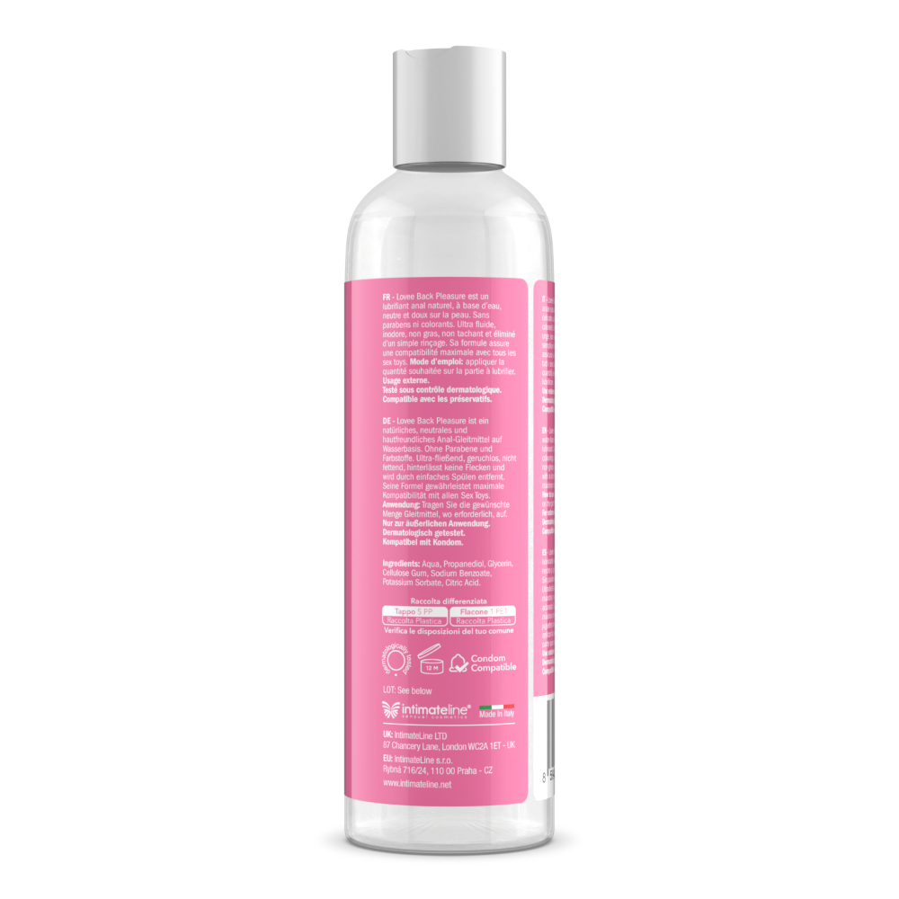 Lovee Back Pleasure , yepyeni doğal su bazlı cinsel kayganlaştırıcı serisidir. Nazik formülü, cilde zararlı boya, paraben veya diğer maddeler içermez. Ultra pürüzsüz dokusu, yüksek kaliteli içeriği sayesinde cinsel ilişkilerinizi daha kolay ve daha keyifli hale getirir. Ayrıca her türlü seks oyuncağıyla uyumludur ve hatta masaj jeli olarak da kullanılabilir! Tutkunuzu, vücudunuza özen göstererek, tamamen güvenli bir şekilde serbest bırakın.